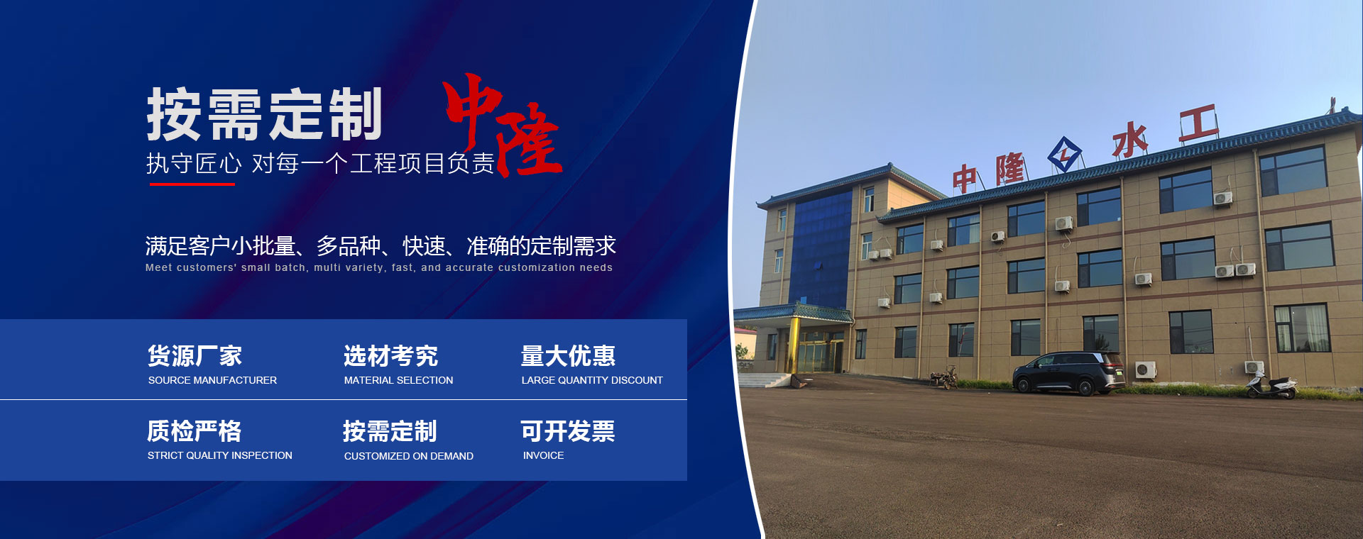 邢臺市中隆水工設(shè)備有限公司位于新河縣九龍工業(yè)園區(qū)占地面積20000平方米。北鄰北環(huán)路、西鄰西環(huán)路,交通便利。 公司堅持,依法經(jīng)營,誠信服務(wù)的宗旨,尋求合作共創(chuàng)輝煌。融科研制造銷售安裝,服務(wù)為一體的水工設(shè)備專業(yè)制造公司。優(yōu)質(zhì)制造設(shè)備,規(guī)格齊全,產(chǎn)品檢測體系完整,各項技術(shù)指標均達到行業(yè)標準,給客戶提供無憂合作! 主要產(chǎn)品有: &n···